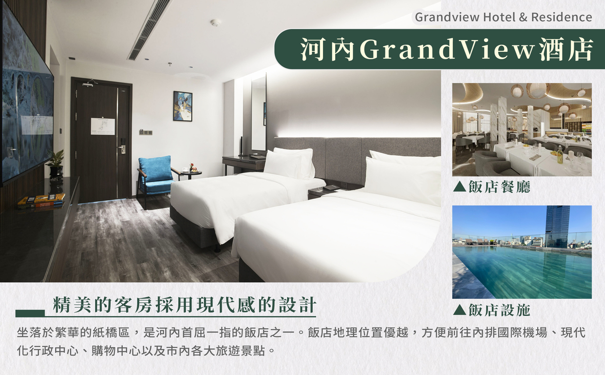 河內Grandview Hotel & Residence/Reyna Hotel Hanoi河內雷納飯店/或Somerset Hoa Binh Hanoi河內盛捷和平酒店或同級 或同級